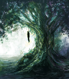 A curious aspect of the dying-god myth is that of the Hanged Man. The most important example of this peculiar conception is found in the Odinic rituals where Odin hangs himself for nine nights from the branches of the World Tree and upon the same occasion also pierces his own side with the sacred spear. As the result of this great sacrifice, Odin, while suspended over the depths of Nifl-heim, discovered by meditation the runes or alphabets by which later the records of his people were preserved. Because of this remarkable experience, Odin is sometimes shown seated on a gallows tree and he became the patron deity of all who died by the noose. Esoterically, the Hanged Man is the human spirit which is suspended from heaven by a single thread. Wisdom, not death, is the reward for this voluntary sacrifice during which the human soul, suspended above the world of illusion, and meditating upon its unreality, is rewarded by the achievement of self-realization.