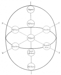 The myth of Ishtar symbolizes the descent of the human spirit through the seven worlds, or spheres of the sacred planets, until finally, deprived of its spiritual adornments, it incarnates in the physical body–Hades–where the mistress of that body heaps every form of sorrow and misery upon the imprisoned consciousness. The waters of life–the secret doctrine–cure the diseases of ignorance; and the spirit, ascending again to its divine source, regains its God-given adornments as it passes upward through the rings of the planets.