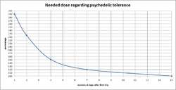 By day 3 or so, regular dose wouldn't do at all anymore; you'd have to wonder if you're even microdosing anymore at that point, because even with tolerance your body will respond to the larger dose of alkaloids even if your mind isn't.