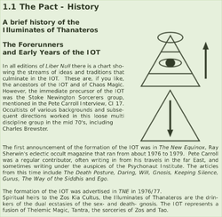 What Do Chaos Magicians Do?The Illuminates of Thanateros is essentially a practical Order, acting to organise local groups (Temples) and larger meetings, where members can take part in magical work in a group context. Plenty of other organisations exist for people who simply wish to read about magic or wish to practice on their own. The IOT strives for excellence in magical technique for those who are sufficiently self-motivated to make that effort.
