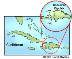 In the American colonies, African Voodoo became what is known as Haitian Voodoo today. In 1492, Christopher Columbus landed on an island known to its indigenous Taino inhabitants as Ayiti, or "Land of the Mountains." Columbus re-named this island Hispaniola, or "Little Spain." Colonists arrived, building plantations that became rich sources of crops like sugar, coffee and indigo. To make these plantations profitable, colonists relied heavily on slave labor. Eventually, Hispaniola became the countries known as Haiti and the Dominican Republic.