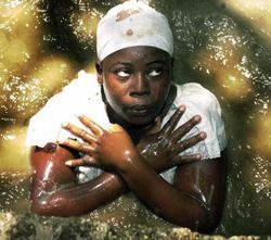 ←A woman in a trance stands in a pool of water during a voodoo Easter ceremony, April 16, 2006.