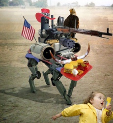 had a dream last night that some sort of fucked up rabid dogs started attacking people in front of me, I'm pretty sure I killed one of them though, eventually this resulted in an apocalypse and I remember in the next "scene" of my dream I was in some post-apocalyptic ruin of a town, and there were large mechanized walking robots roaming along with soldiers in futuristic tech-gear, they were passing me and I lied down to play possum, as one of them passed me they said "That one's dead" or something like that. I then remember eventually finding a group of US soldiers fighting an enemy from a building they were posted/held up at. That's all of that portion of the dream I remember.