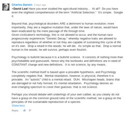 Particularly noteworthy in today's prevailing intellectual climate in which mental illness is considered to have biological or chemical causes is what DSM-III-R, says about such physical causes of this catch-all concept of schizophrenia: It says a diagnosis of schizophrenia "is made only when it cannot be established that an organic factor initiated and maintained the disturbance" (p. 187). Underscoring this definition of "schizophrenia" as non-biological is the 1987 edition of The Merck Manual of Diagnosis and Therapy, which says a (so-called) diagnosis of schizophrenia is made only when the behavior in question is "not due to organic mental disorder" (p. 1532).