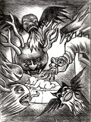 <Others are found elsewhere. Grotesque ideas are found in mythological stories, "primitive" belief systems or modern art. Weird ideas come to us in dreams. Strange theories come out of the mouths of children.