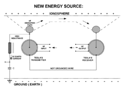 Some reference to Tesla's cosmic energy collector. Seems he just proved free energy was available, but this device was not practical. He later made a device that was, but that design is a mystery.