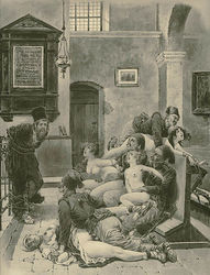 Another very hot (and probably untrue) story from ancient history is the rite of passage for Babylonian women. Every citizen of Babylon would, at some time in her youth, go to the temple of Mylitta to prostitute herself for the goddess. She'd take a seat, and wait for some guy to buy her. She would have to have sex with the first man to toss a silver coin her way, refusing no one, and not leaving until then.